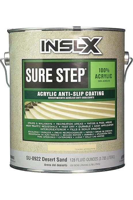 Complementary Coatings Su0922092 01 Insl X Sure Step Acrylic Anti Slip Concrete Coating 1 Gallon Desert Sand Concrete Paint Amazon Com